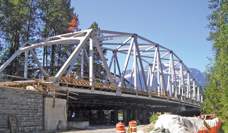 Surrounded by the Mt Baker National Forests, the Sauk River Bridge rests over water adorned with lush vegetation. The wild Sauk River is home to endangered species and in order to protect the surrounding inhabitants, the replacement bridge was powder coated after hot-dip galvanized (HDG). The duplexed coating provides the much needed corrosion protection, protecting both the structure and its environment.